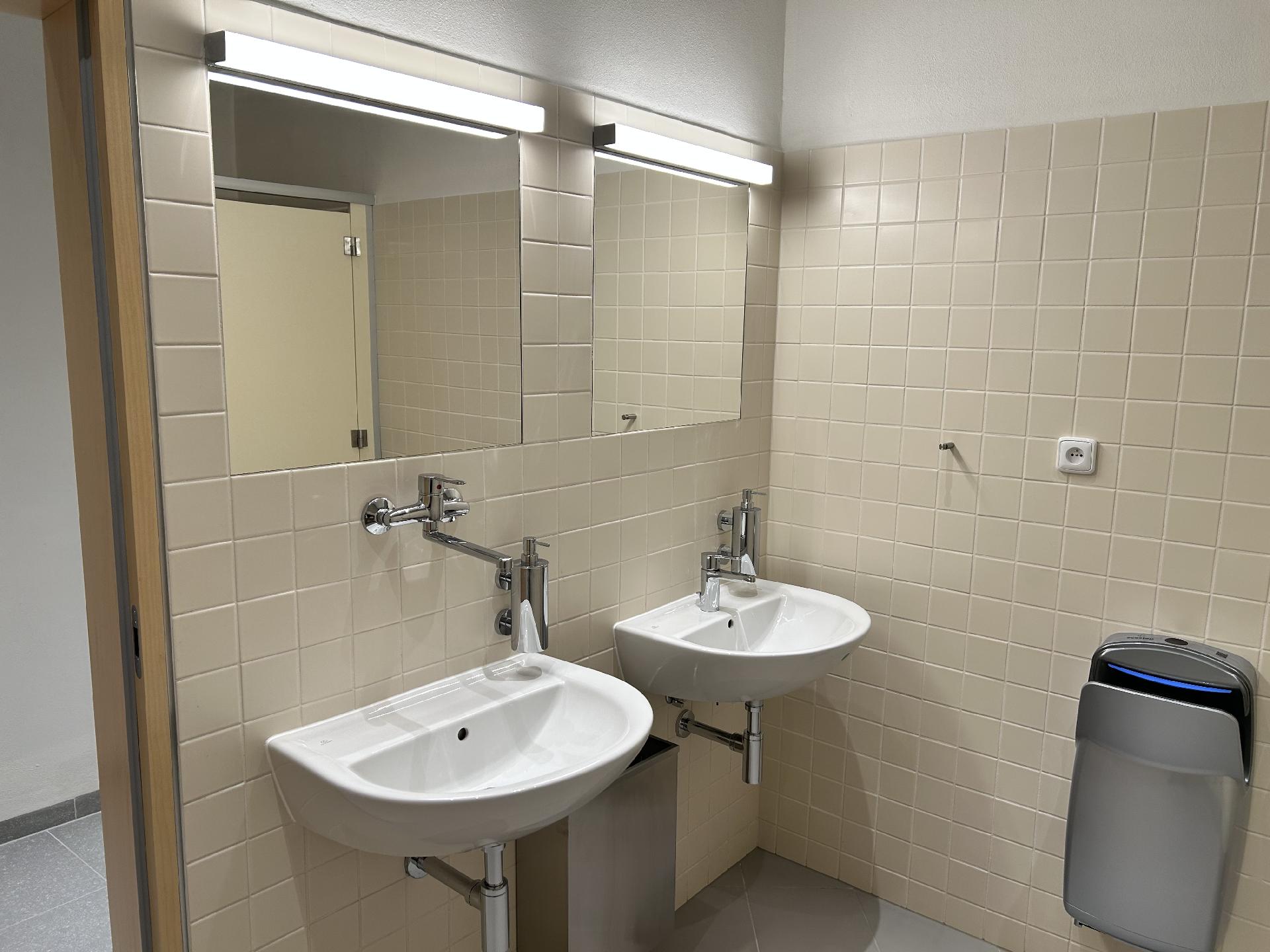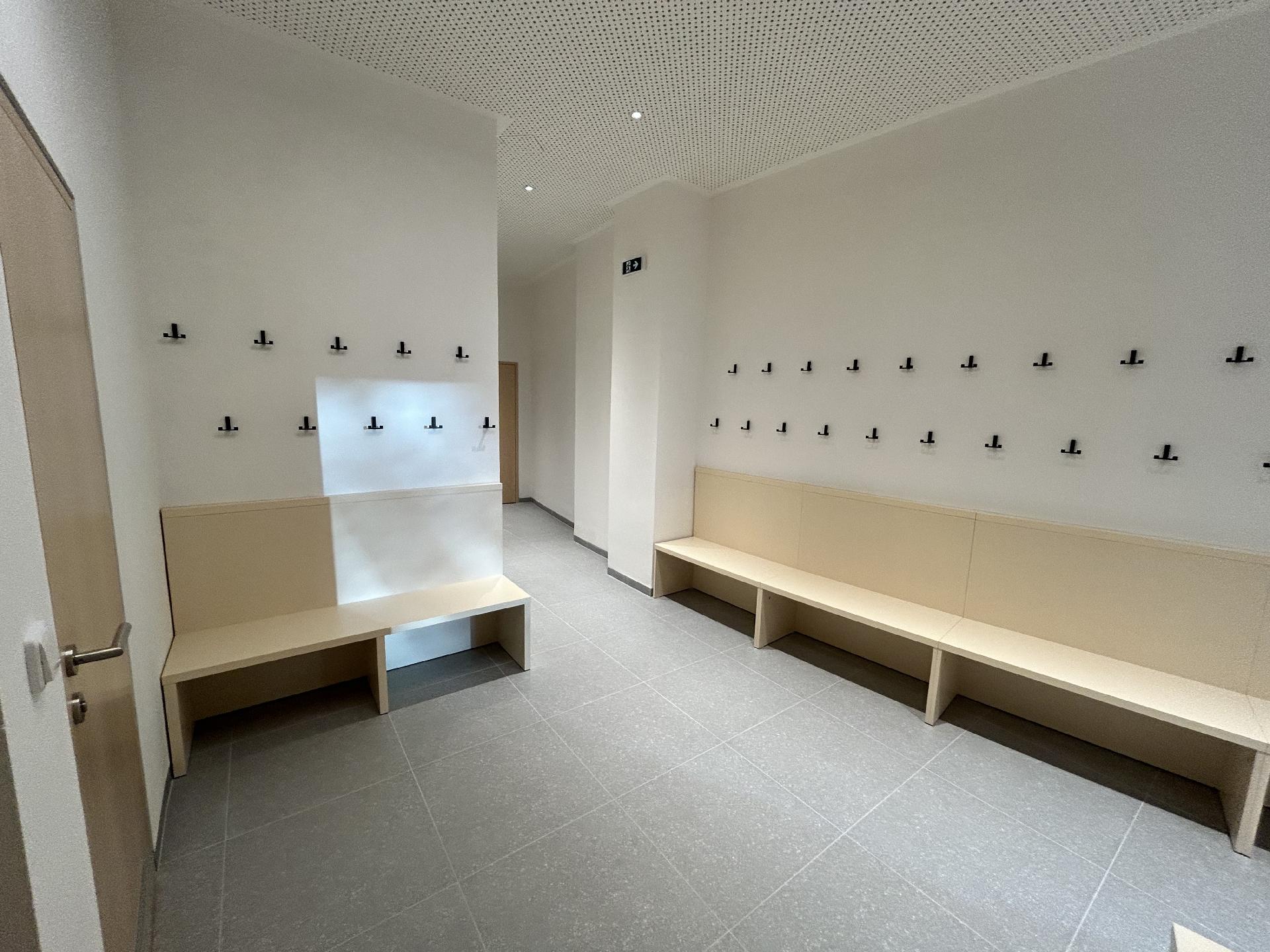 Rozsáhlá rekonstrukce předsálí (demoliční práce, nové rozvody topení, vody a elektřiny, omítky, obklady, sociální zařízení, schody z litého terasa)